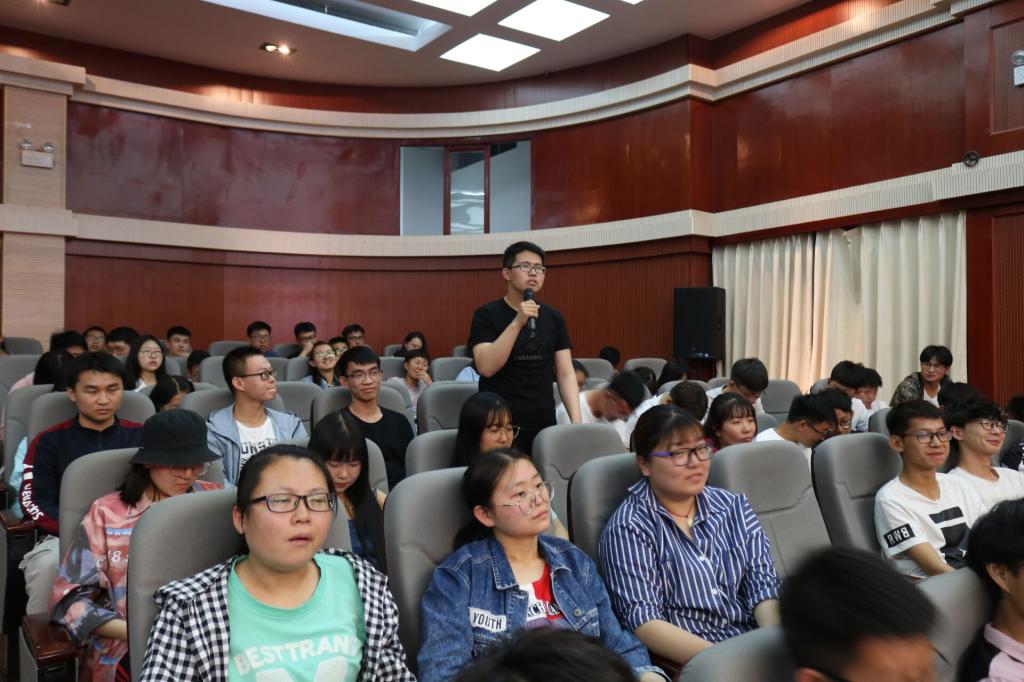 报告会分宣讲和答疑两个环节。首先外国语公司英语15-1班的仝亚茹就考研方面向同学们介绍自己经验,他讲到“当你遇到困难时,不要害怕它,只要你再坚持一下,你就可能遇到转机。”随后3044永利电子17-1的郑梓文同学,向同学们介绍了部队的故事,他说“让自己青春有些不平凡的经历,把青春压进枪膛,蓄力发射,我想,我们每个人都能够完善自己,成为自己的榜样!”接下来来自电力公司电气民15班的达布希拉图同学建议同学们在课余时间积极参加各种文体活动和科研比赛,不断提升个人能力,不负青春时光。来自材料科学与工程公司材16-3班的丛日原,与大家分享了他的学习过程与比赛经历等,为低年级同学树立良好的榜样,带动更多的同学参与到科技创新中来。最后来自建筑公司建14班的范云龙同学,希望同学们在大学中勇于担当,团结同学,做一个有益于集体的人。答疑环节,同学们积极提问,优秀员工代表做出耐心解答,大一同学们与宣讲员们互动激烈,现场气氛持续高涨。