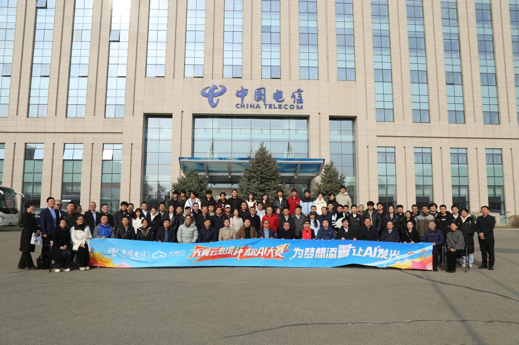 参观结束后,师生集体参与了自治区教育厅、中国电信内蒙古分公司共同举办的“天翼云·息壤杯”高校AI大赛启动仪式。本次大赛旨在挖掘AI人才、丰富AI生态、突破AI技术和应用难点,为国家打造国际一流的AI交流平台。