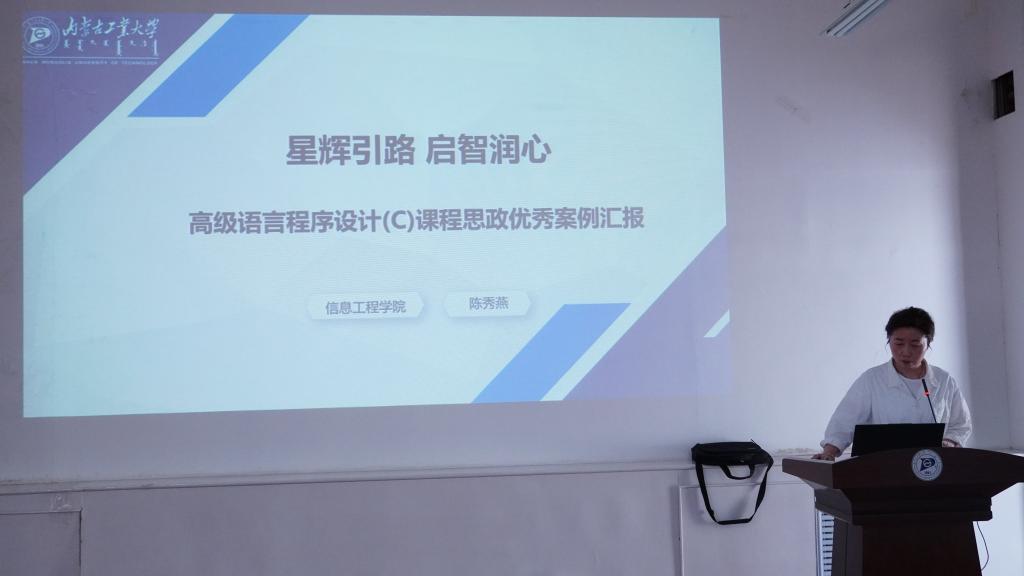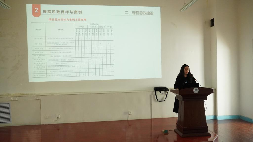 会上,电子系侯婷老师首先分享了《通信原理》课程思政建设经验,从课程概况、课程思政建设、教学方法与设计和思政案例分享四个方面做了详细的介绍;计算机系张燕老师以《计算机组成与结构》课程为例,重点从教学设计、课程实施两方面展开分享,强调要通过课堂讲授和小组讨论将思政元素进一步融入,引发员工思考、拓展知识、提升实践能力;校计算中心陈秀燕老师则结合《高级语言程序设计C》课程,讲述了方法手段、教学过程与思政教学紧密结合的过程。