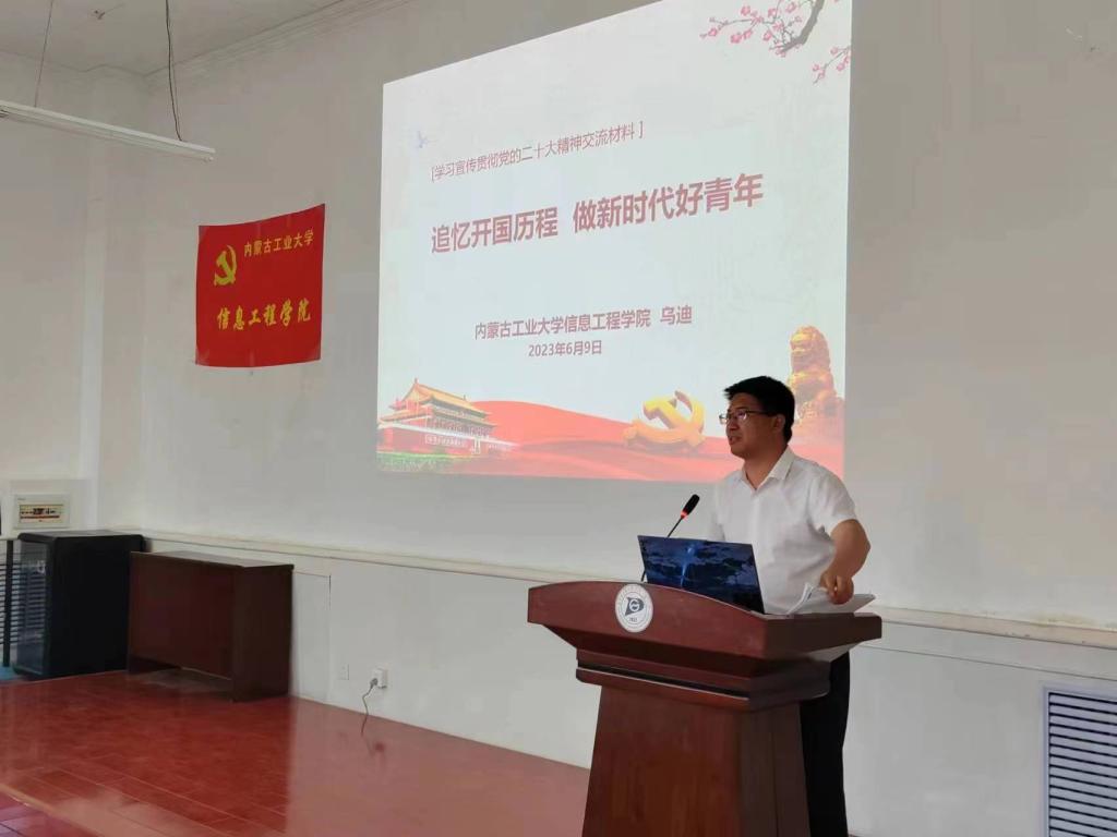 6月9日,公司党委书记乌迪以“追忆开国历程 做新时代好青年”为题,面向全院员工入党积极分子讲授主题教育专题党课。