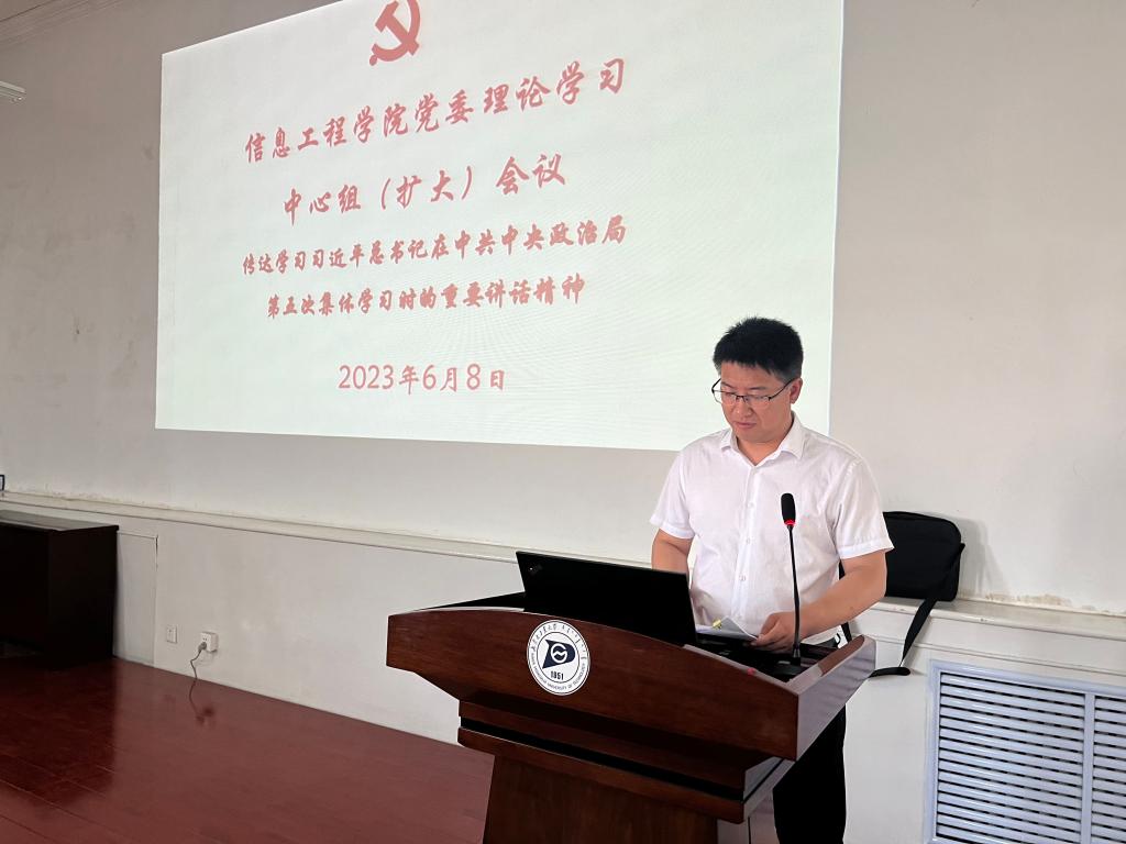 6月8日,公司党委理论学习中心组(扩大)召开专题学习会,深入学习领会习近平总书记在中共中央政治局第五次集体学习时的重要讲话精神。公司党委书记乌迪主持会议,全院教职工参加学习。