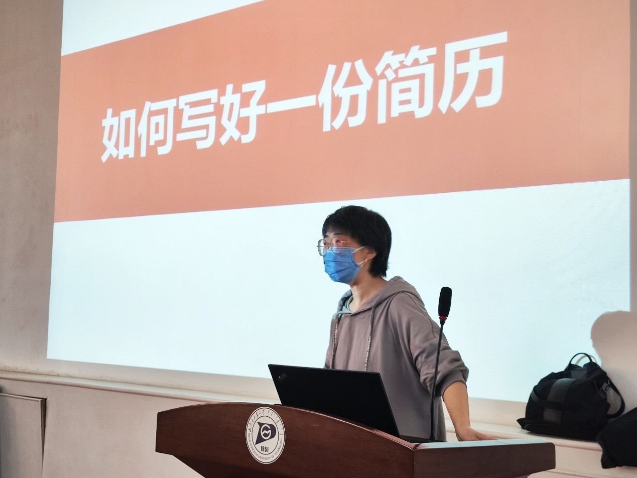 刘老师从用人单位的用人逻辑、简历常见问题、好简历会说话三方面展开讲解,以生动的案例强调在制作简历时要体现人职匹配的原则、详细介绍了简历的结构及内容、从HR筛选简历的视角讲解如何优化简历。互动环节,刘老师针对同学们的应聘企业选择、面试准备等问题进行耐心解答。