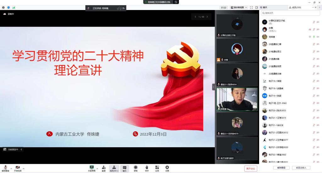 党委书记乌迪以“追忆开过国历程 做新时代好青年”为题,鼓励同学们做有理想、敢担当、能吃苦、肯奋斗的新时代好青年;副研究员王彩玲引导同学们充分认识党的二十大的重要意义;副书记、副经理佟姝婕为同学们深入解读党的二十大精神;公司党委委员许霞就如何做一名合格的老员工党员这一主题为同学们宣讲;校外辅导员翟鹤重点普及老员工保密知识。