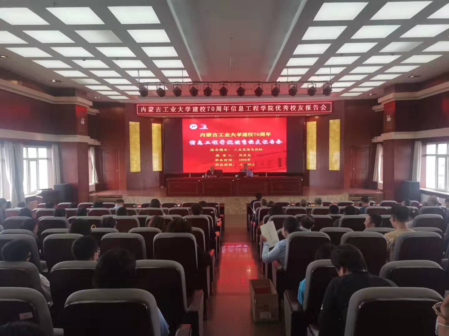 9月15日下午,公司在金川校区电力大楼10楼报告厅举办2场建校70周年优秀员工报告会。受公司邀请,北京元年科技股份有限公司首席架构师兼副总裁、公司94届工电-(2)班刘庆龙及兴和县店子镇党委副书记、公司2012届研究生贺龙两位员工为公司师生做报告。公司党委书记王彩玲,经理李春明、副经理韩建峰,公司部分教师及研究生参加报告会。