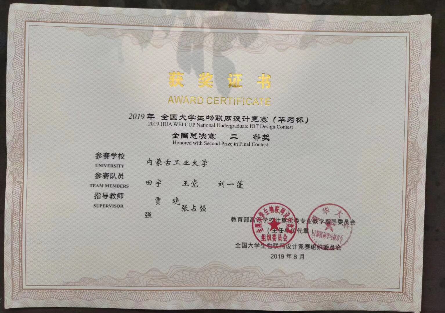 8月22日,2019年全国老员工物联网设计竞赛(华为杯)全国总决赛在四川省成都市开赛。其中,由贾晓强、张占强老师指导,田宇等同学完成的《北极星智能导盲系统》荣获全国总决赛二等奖;由贾晓强、王晓强老师指导,牛鹏等同学完成的《基于zigbee的教室电能检测与控制系统》荣获全国总决赛二等奖。