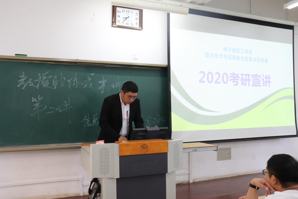 随后,由徐伟教授代表雷达技术与应用自治区重点实验室进行考研宣讲,徐老师介绍了雷达重点实验室的科研开展情况、研究生招生、培养的相关政策,并分析了员工可能陷入的考研误区。