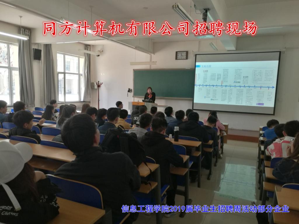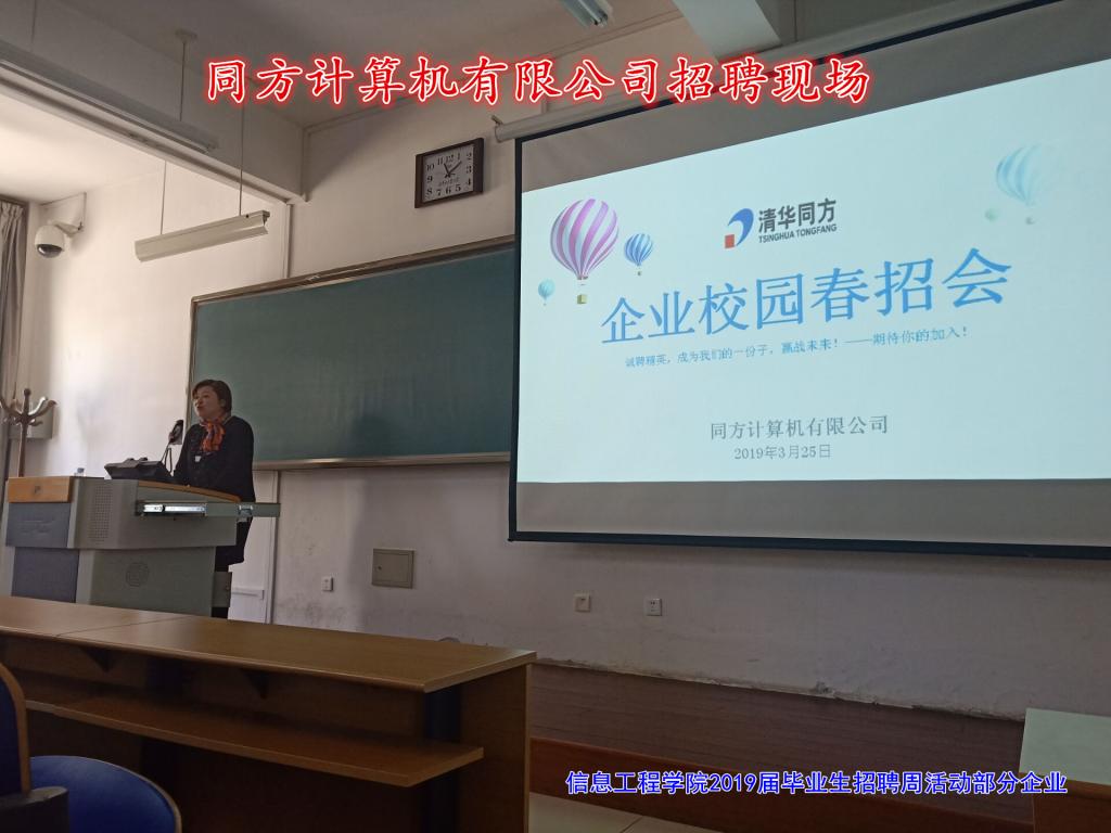 3月25日下午,公司2019届毕业生就业招聘周活动拉开帷幕。三月初以来,公司组织毕业生到各地集中完成毕业实习,月末大部分毕业生都已返校,但很多毕业生工作仍未落实。另外,还有一批考研结果不理想的同学也有就业打算,针对以上情况,公司领导研究决定邀请一些一直以来联系比较密切,岗位需求较大的企业来公司举行现场招聘会。受公司邀请,清华同方股份有限公司领导率先来公司招聘。