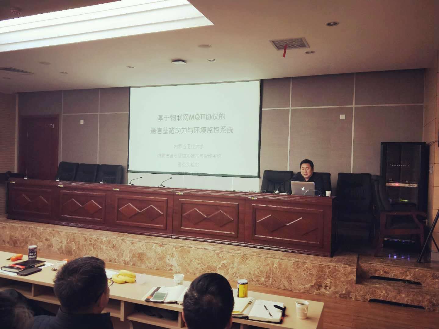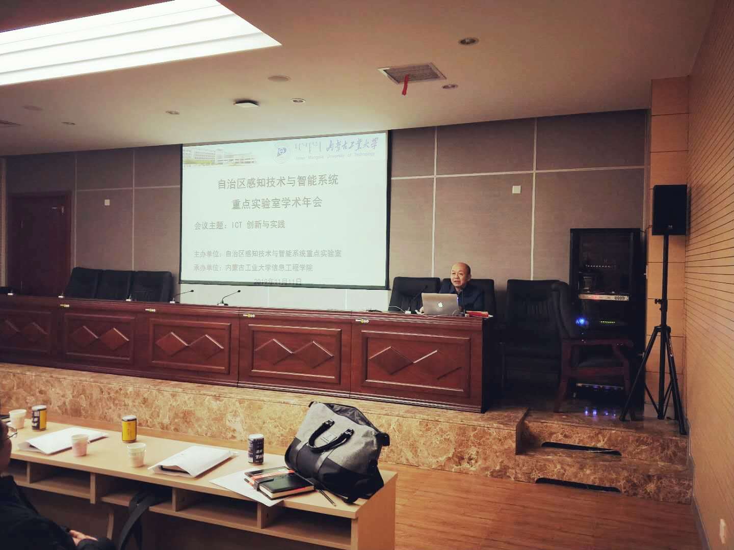 会议在吕晓琪教授和李春明教授的致词中开始,首先听取了实验室主任房建东教授作的“重点实验室2018年度工作总结”,简要回顾了实验室一年来的工作进展,随后四位专家主题报告。内蒙古大学博士生导师、重点实验室学术委员会主任委员刘永信教授作题为“信息融合技术研究进展”报告,刘教授结合近年来开展的科研项目案例,形象阐述数据融合目的,说明数据融合技术关键与技术难点,介绍多传感数据融合的最新科研进展。刘教授详细阐述了传感器直接数据融合、特征向量融合及决策级融合三种常用方法,多目标跟踪数据关联、状态估计、身份估计、图像融合及图像与空间数据配准等常用的融合算法,以具体的实例形象的讲解JDL模型的应用。刘教授在报告中还提到数据融合的最新技术,将计算机进程和物理进程构成统一体,集计算、通信与控制于一体的下一代智能系统。内蒙古交通管理局王葆元研究员作题为“以数据思维谋划智慧交通研究”报告,王研究员从城市道路的实际问题出发,形象展示数据与车辆密度控制之间的关系,引出物联网大数据融合应用技术在智慧城市建设中发挥的作用,强调知识跨界应用的意义。内蒙古GPS网管中心主任、重点实验室学术委员会主任委员张日升高级工程师作题为“产学研协同创新与ICT人才培养”报告,张总的报告从一个小视频开始,他结合自己多年的研发经验,分析说明创新的第一要素是树立创新思维,鼓励研究生真正接触社会,在生活中学会观察,着重阐述研究生科研中如何树立创新思维、产生创新思路,形成解决实际问题办法。张总还深入探讨产学研协同创新模式和途径,明确指出ICT企业对人才的需求和要求,为重点实验室在产学研用中形成创新思路、解决社会、企业重大科技需求,凝练科研特色,指明方向。自治区感知技术与智能系统重点实验室纪松波教授介绍了课题组研发的ICT最新科研成果—基于物联网MQTT协议的通信基站动力与环境监控系统,纪教授以自主创新科研成果的研发过程为案例,详细并深入浅出地阐述如何运用专业理论知识解决实际问题、解决工程中的技术问题,如何有效提高系统的可靠性、稳定性和性价比。