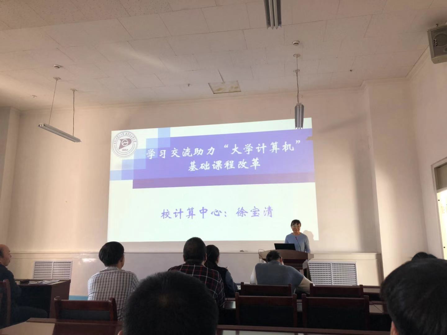 徐宝清老师,从传承先辈教学理念、学习同行经验、研究教学培养方案、建设大学计算机混合课程四个方面,就大学计算机基础课程改革问题进行了交流发言。