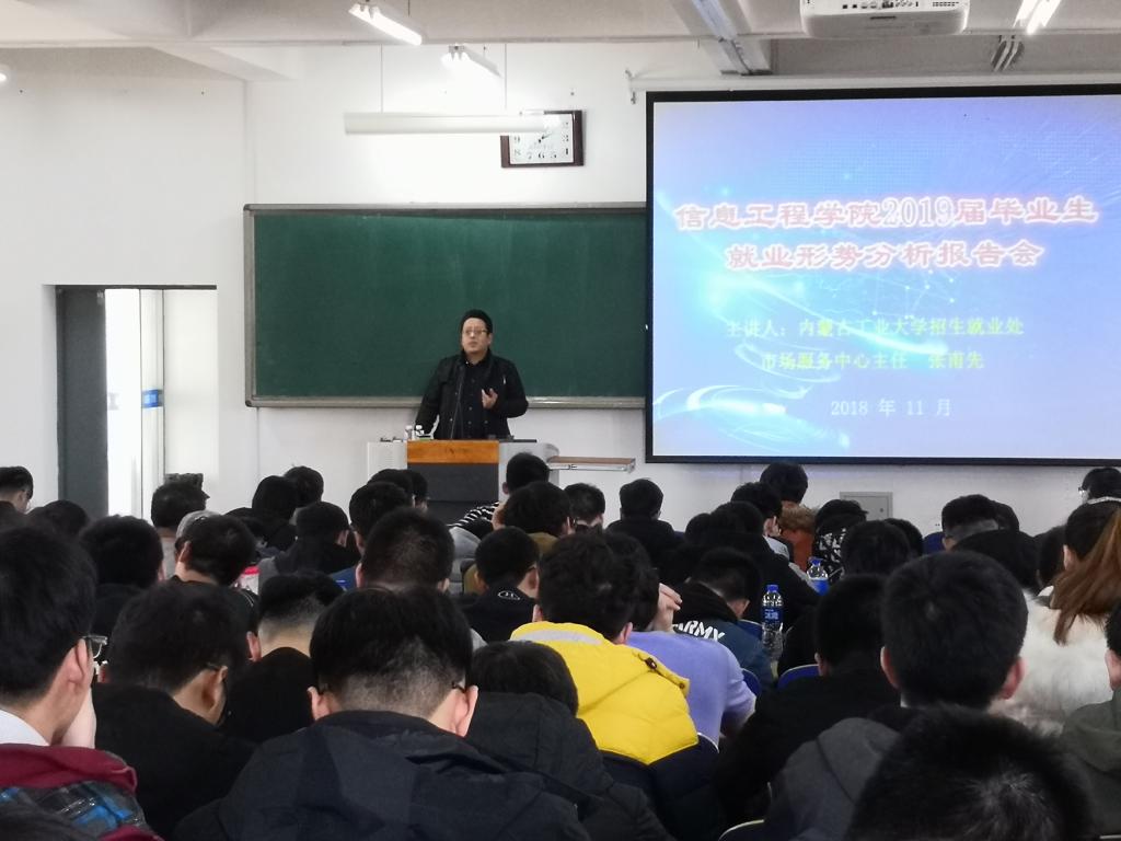 11月15日下午,公司邀请公司招就处市场服务中心主任张甫先老师为2019届毕业生做就业形势分析报告。张老师介绍了近年来公司毕业生就业的行业和地区分布情况、分析了2019届毕业生就业的形势、解读了国家和自治区针对毕业生就业的相关政策,并结合案例介绍了如何有效搜集就业信息及参加各类招聘会的相关要求及安全事项。张甫先结合当今社会发展及社会时事,为广大同学分析了信息类行业的就业趋势。通过张老师全面细心的讲解使公司2019届毕业生了解了国家及自治区老员工就业相关政策,更加明确了自己的就业方向,为公司毕业生就业工作的近一步开展打下了坚实的基础。