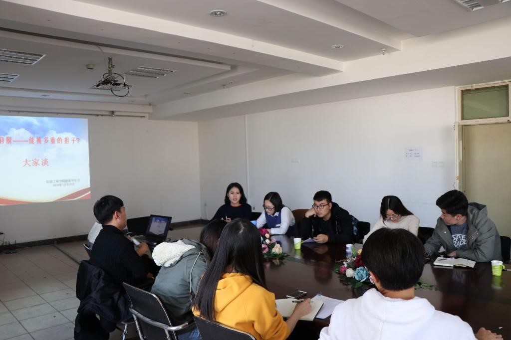 为深入贯彻落实习近平新时代中国特色社会主义思想和党的十九大精神,教育和引导广大青年员工爱国、担当、奋斗,争做担当民族复兴大任的时代新人,公司团委于11月13日中午在0918会议室召开“我的肩膀——能挑多重的担子”主题讨论会,员工会部长及以上成员参加。