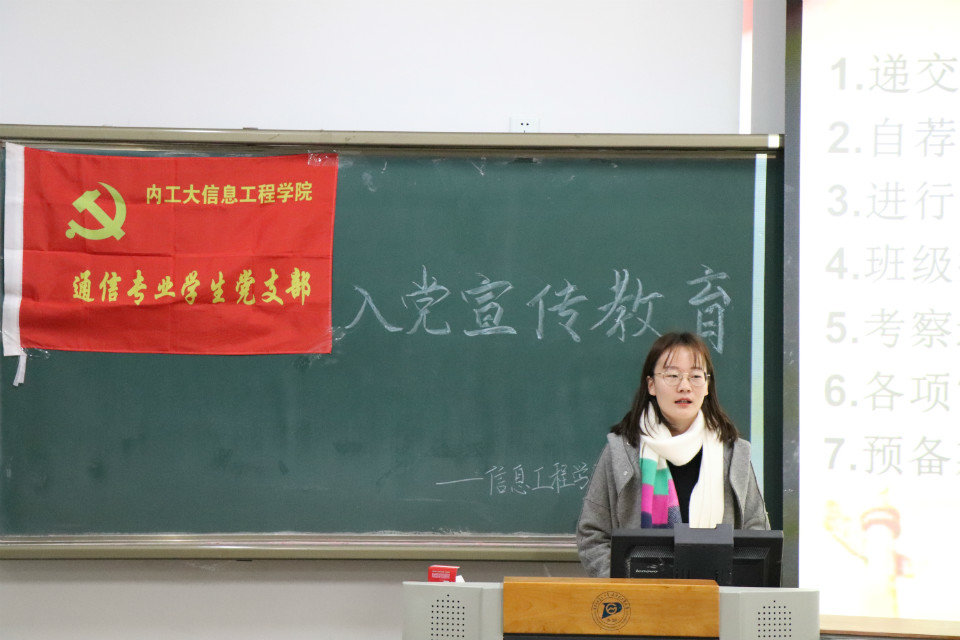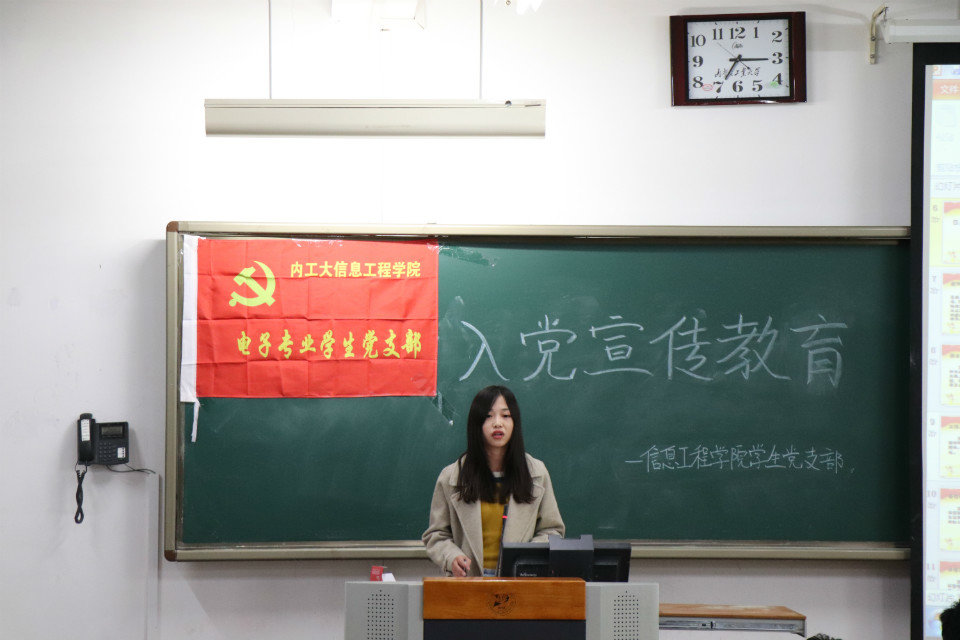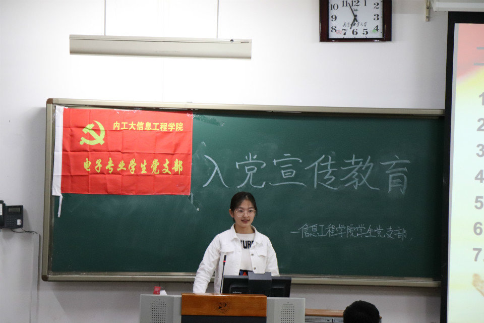 为了让公司2018级同学们更好地了解中国共产党和熟知入党要求及入党程序,2018年10月10日晚七点,由公司党委主办,员工党支部承办的入党启蒙教育会于教A举行。各员工党支部支委会成员分别向各专业同学们作了讲解。