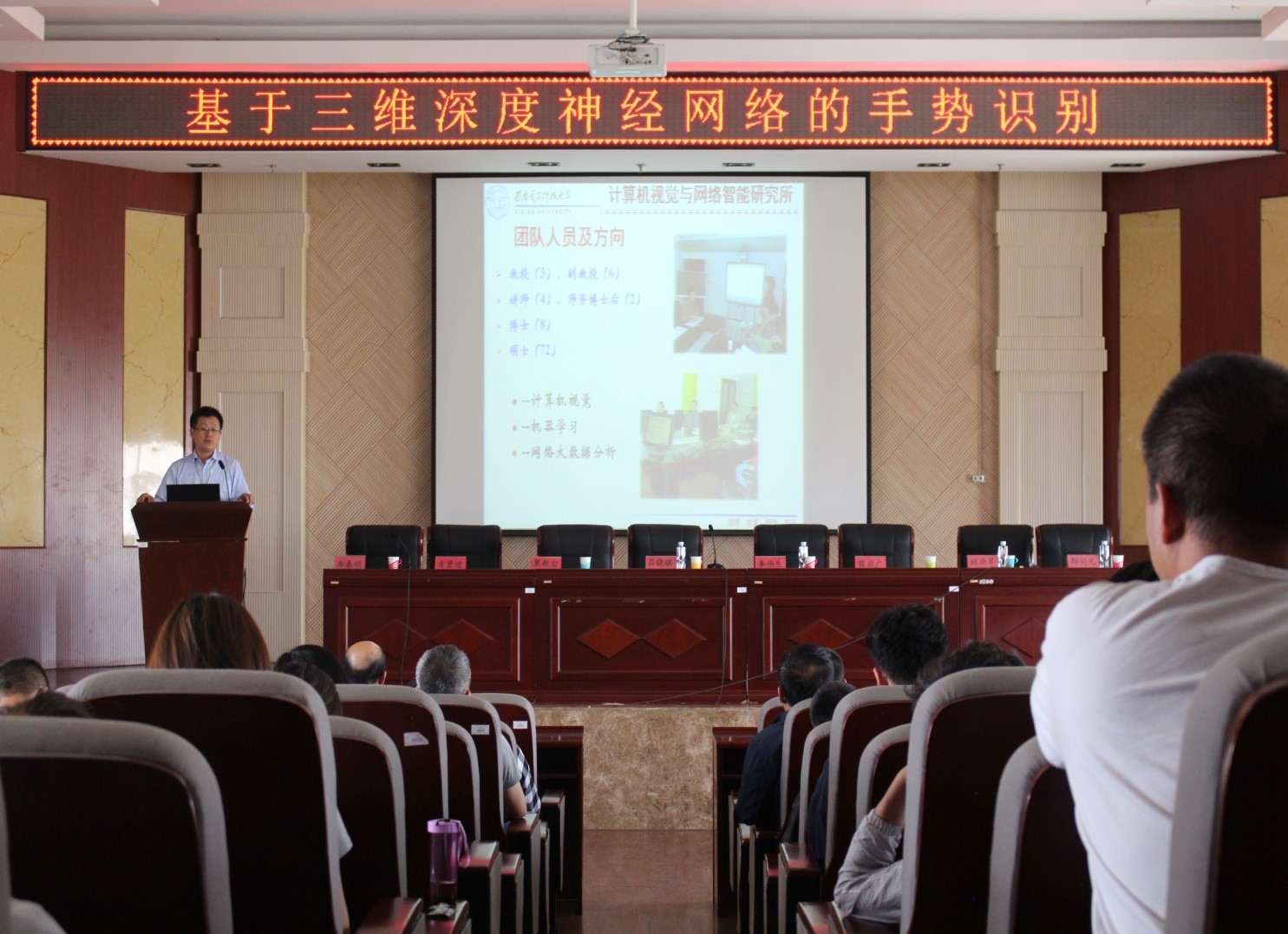 李伟生等六位专家教授分别以《基于多模态医学图像处理的多维可视化方法》、《轨道交通系统信息化研究》、《基于三维深度神经网络的手势识别》、《差分隐私保护研究》、《基于结构和引力双内聚的微博社区探讨》、《基于人工智能的遥感大数据应用》为主题,就相关领域学术研究现状、前沿问题及研究困难和挑战进行了深入分析讲解。