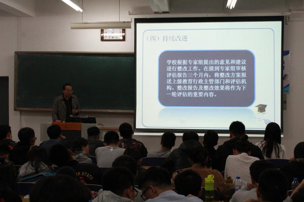 召开学风建设暨审核评估动员会议,公司副书记、副经理王金彪详细讲解了审核评估的基本概念、目的意义、指导思想、原则理念、专家进校考察工作程序及专家关注的问题等,加深了同学们对审核评估的认识。要求同学们端正学习态度,按时上课,不迟到早退、严格遵守课堂纪律,积极参与互动;加强自我修养,严格执行公司各项规章制度,营造良好的学习、生活氛围。公司团委微信公众号开设“本科教学审核评估”专栏,为同学们推送相关知识,并举办全院员工评建知识竞赛,使审核评估的理念深入每位同学的心中。