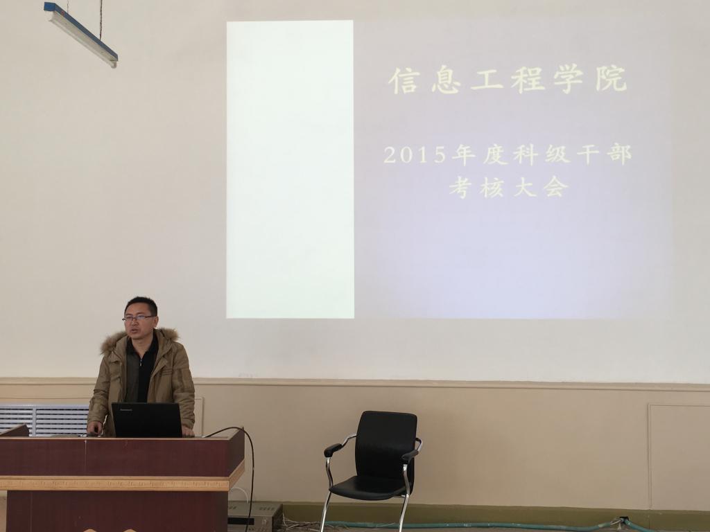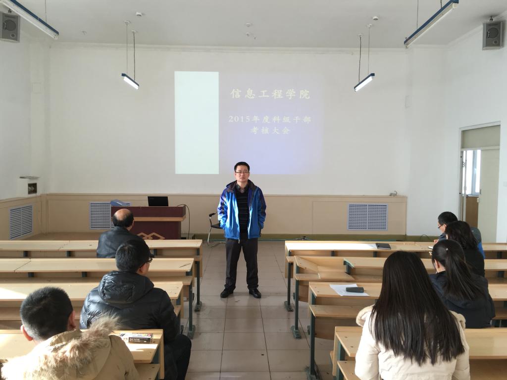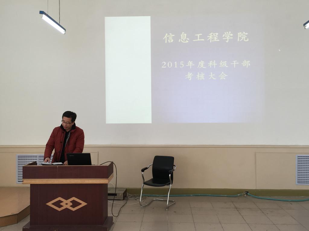 为进一步提高公司中层干部的工作能力和效率,检查和了解公司科级干部年度履行岗位职责情况,不断加强干部队伍作风建设,提高干部的整体素质,2015年12月25日上午,3044永利2015年科级干部述职考核会议在电力大楼十楼会议室举行。公司科级干部考核领导小组成员、全体科级干部参加会议。会议由公司党委书记、院科级干部考核领导小组组长彭建兵主持。