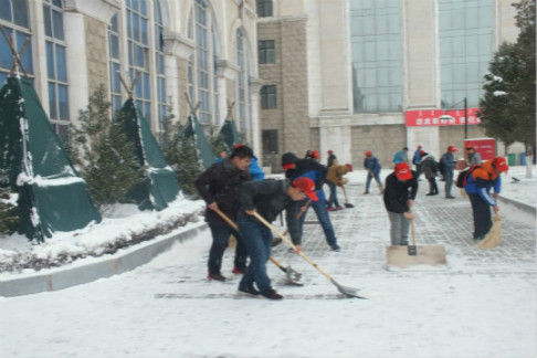 同学们主动积极,相互配合,他们手拿铁锹、扫帚、雪铲,到处都是志愿者们忙碌的身影。虽然伴有零星小雪,同学们热情高涨,没有丝毫退缩,依旧耐心的清理着每个角落。整个服务活动持续了2个多小时,井然有序,表现出学子们良好的服务意识。