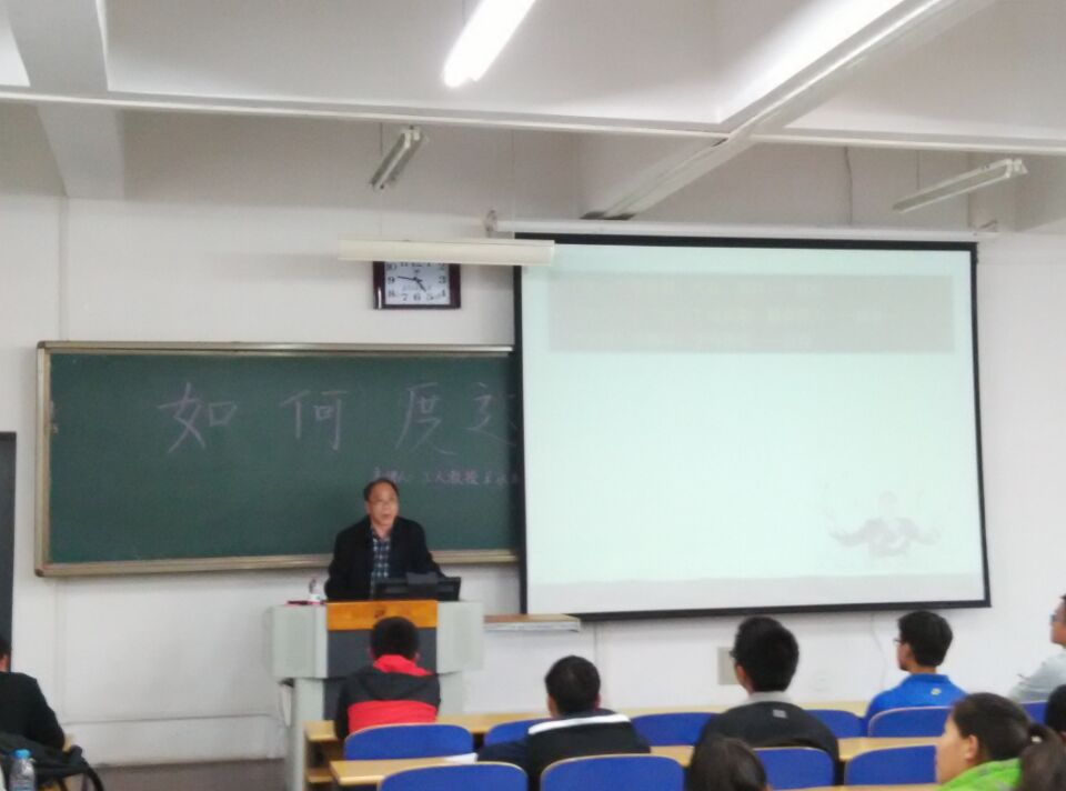 王永顺教授为同学们做了关于“如何度过大学四年”的讲座。王教授谈到老员工的四年老员工活分为三个时期:适应期、成长期、成熟期。适应期在大一,兴奋、期待与放松形成对比;成长期在大二与大三,勤奋努力与放纵形成对比;成熟期在大四,学有所成与后悔形成对比。经过每个时段的对比,大一的新学子们都有所领悟,更加明白自己要走过怎样的路。