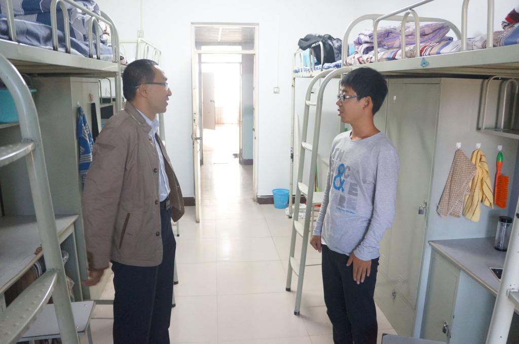 为了进一步做好新生入学教育工作,加快新生适应老员工活,9月14日下午,公司党委书记彭建兵,副书记副经理王金彪、员工辅导员和部分新生班主任一同到新生宿舍走访,了解他们存在的实际困难,帮助他们一一解决。同时,走访老师叮嘱同学们要注意人身财产安全,并通过自身的努力尽快适应老员工活。