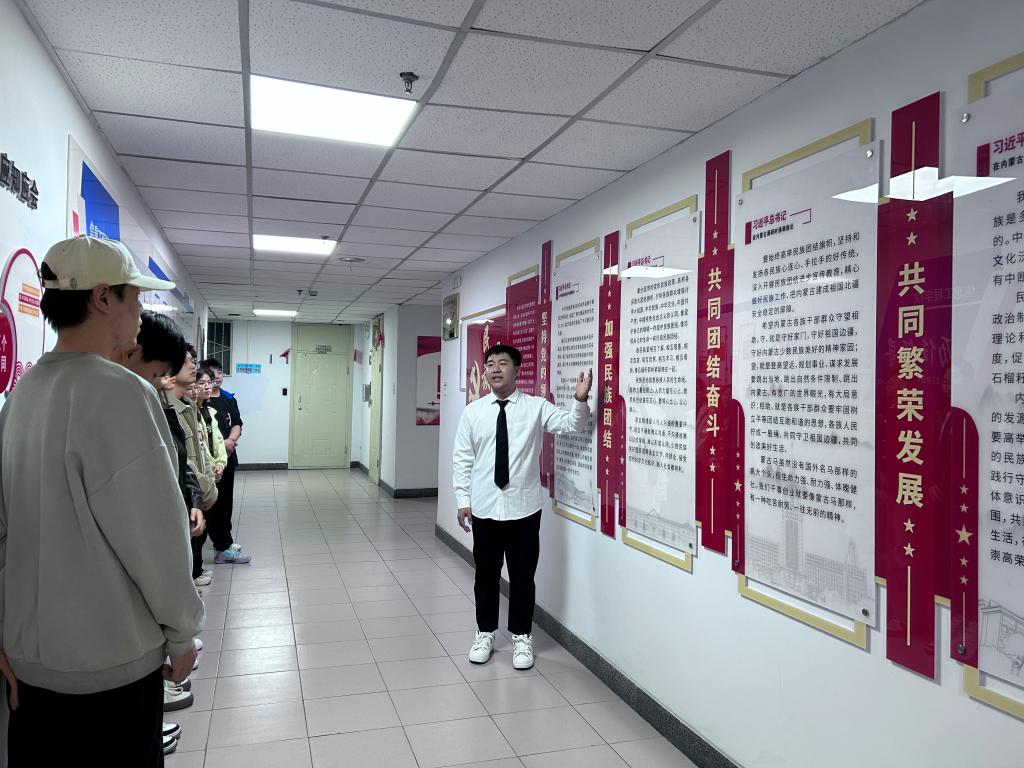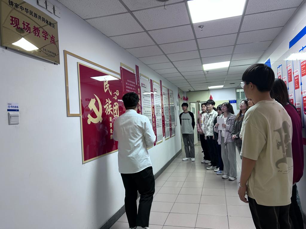现场教学点位于电力大楼九楼,由习近平总书记重要论述、民族团结进步故事、民族文化知识三个方面、15个版面构成。同学们通过一幅幅真实鲜活的图片、一段段饱含深情的文字,感受着在党的坚强领导下,我国各民族融合、文化繁荣、科技进步等辉煌成就,见证中国共产党为各族人民谋发展、谋幸福的辉煌篇章。