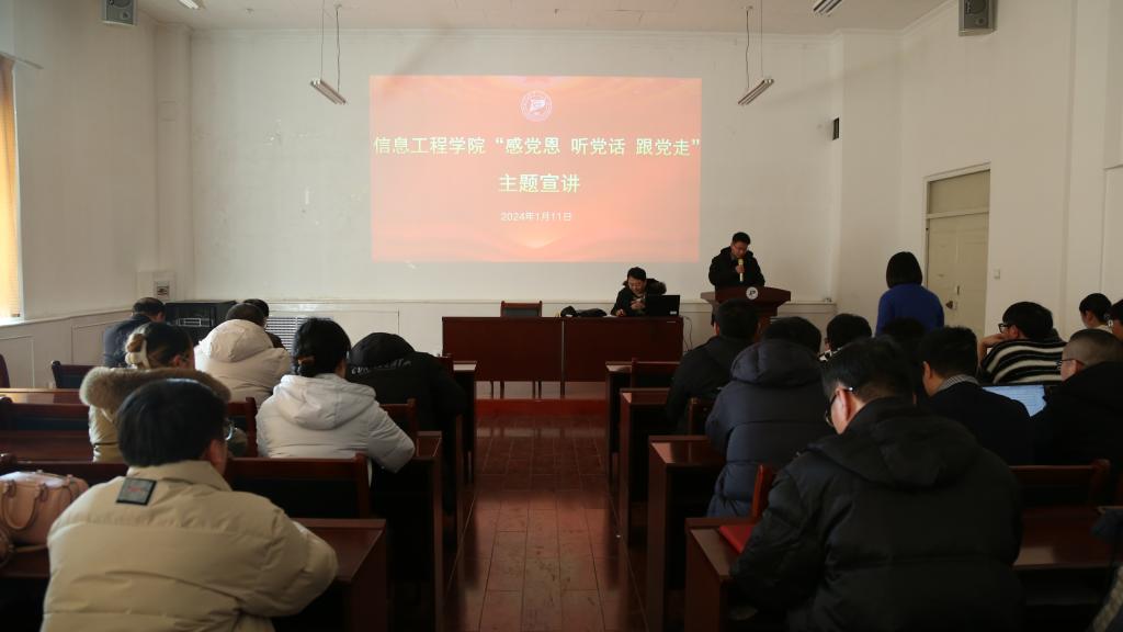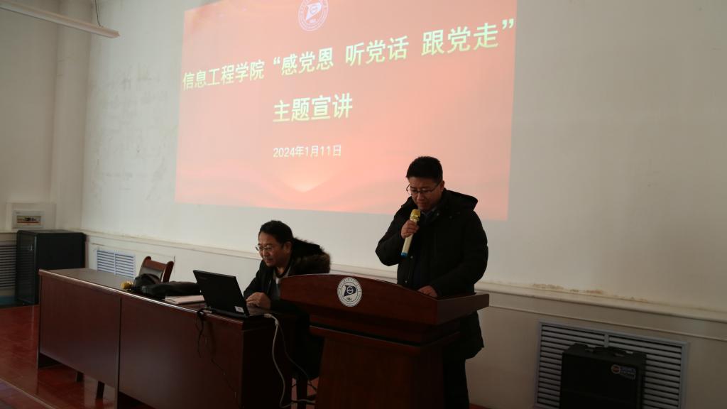 2024年1月11日下午,3044永利开展“感党恩 听党话 跟党走”主题宣讲,邀请马克思主义公司硕士研究生导师王大为老师作题为《感党恩、听党话、跟党走---奋力书写中国式现代化内蒙古新篇章》的主题宣讲。公司党委书记乌迪主持,师生代表100余人参加。