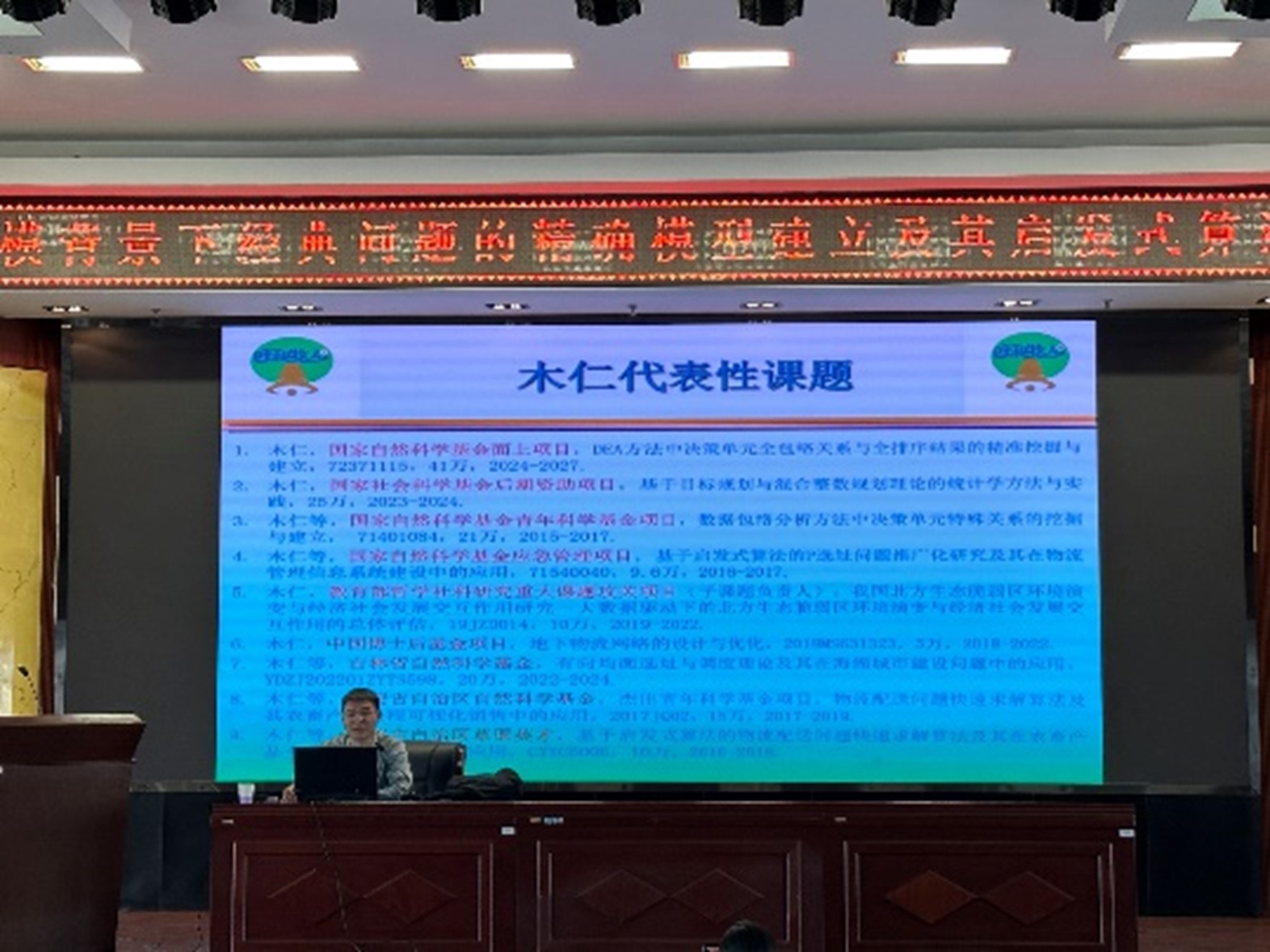 10月26日下午在电力大楼十楼报告厅,吉林财经大学的木仁教授为我们带来了“大规模背景下经典问题的精确模型建立及其启发式算法开发”的学术讲座。讲座中,木仁教授分享了大规模数据包络分析模型的求解算法,并且通过举例COVID-19疫情期间生活物资的科学管理分配问题等具体问题,帮助同学们深入理解了如何根据具体实例进行算法开发及模型建立。