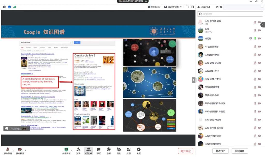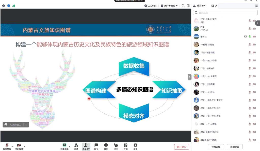 10月27日上午,河北工程大学信息与电气工程公司副经理王巍教授、内蒙古大学的诺明花副教授分别为公司研究生做了题为“无人系统协同组网与辅助边缘计算技术研究”、“内蒙古文化旅游领域知识图谱构建与应用”两场学术讲座。两位教授详细讲解了相关研究领域重点与难点问题,让大家增长了知识,开拓了思路。