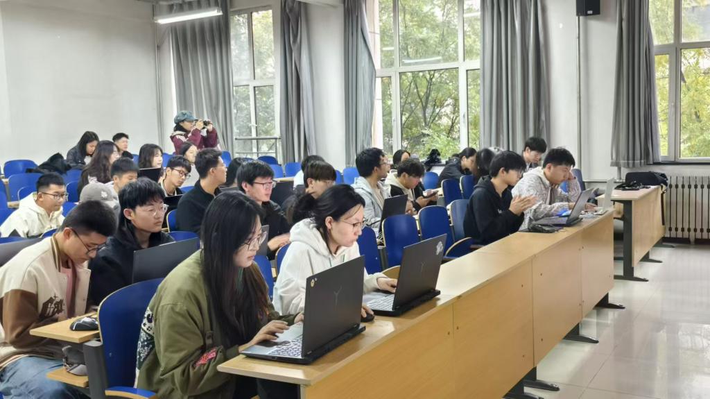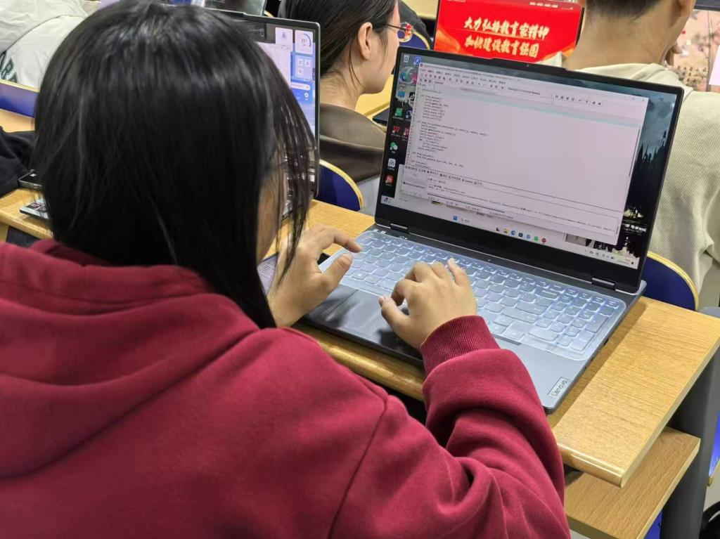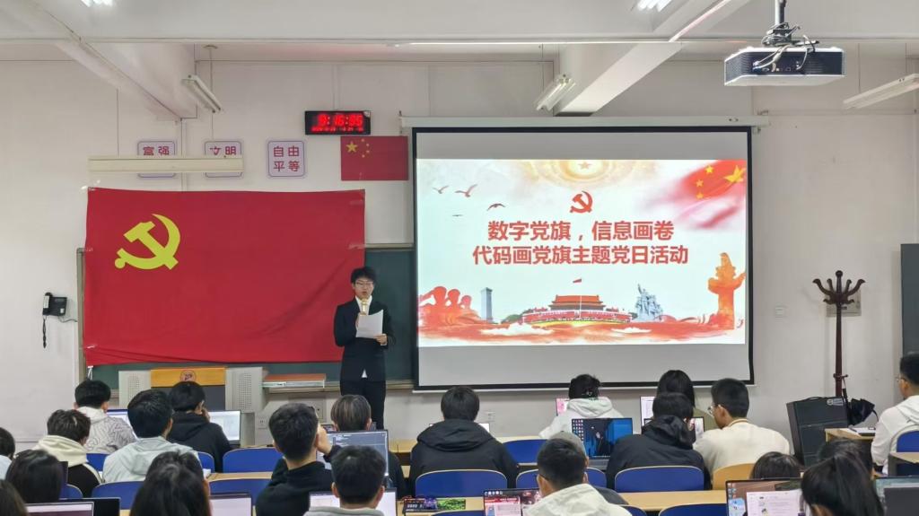 活动现场,同学们热情高涨,他们运用自己所学的专业知识,以代码为画笔,在屏幕上精心绘制出一面面鲜艳的党旗。每一行代码都凝聚着同学们对党的崇敬与热爱,每一个像素的点亮都是对祖国繁荣昌盛的美好祝愿。