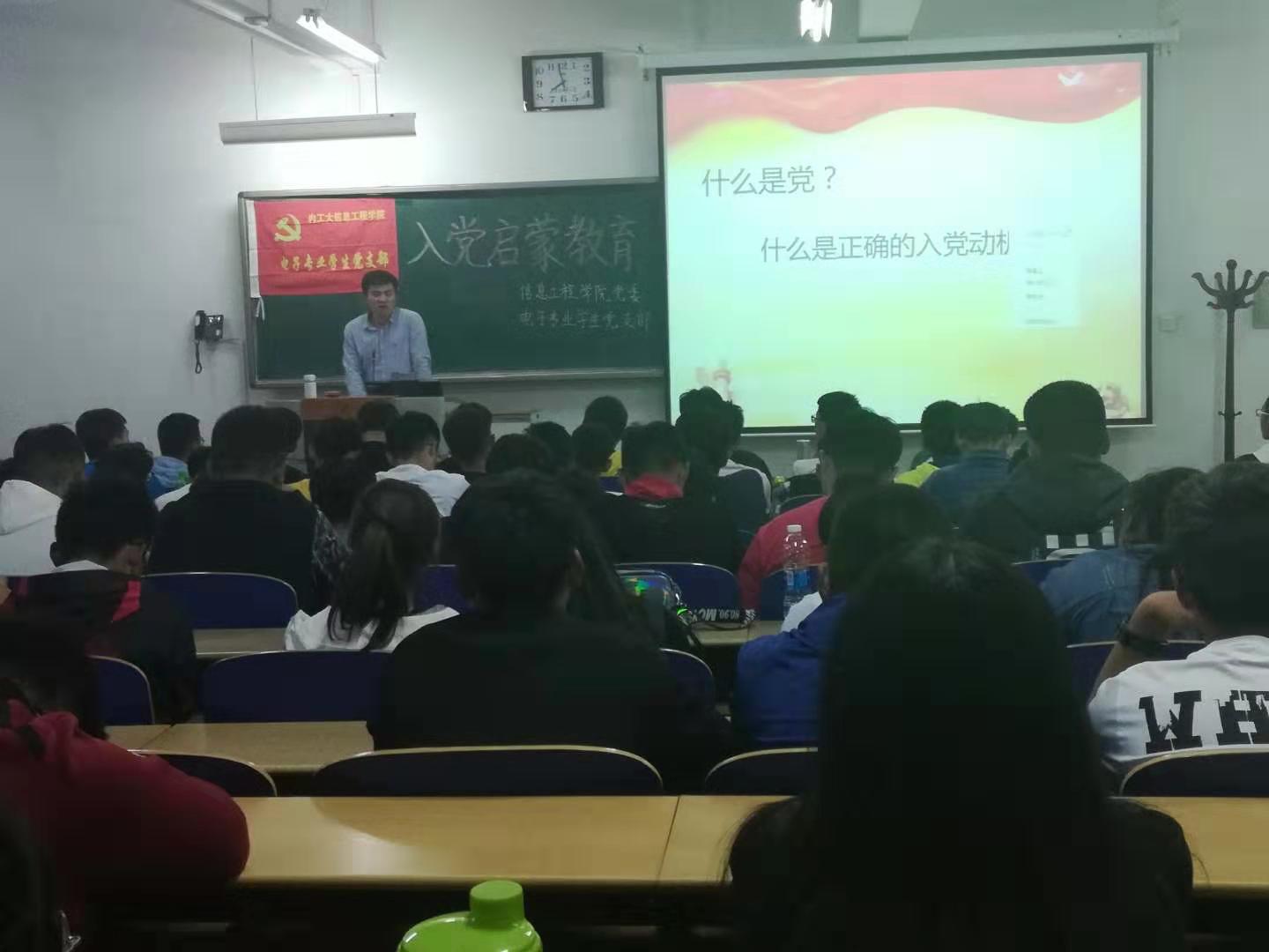 2019年9月25日通信专业员工党支部、 电子专业员工党支部、计算机专业员工党支部分别在教A102、教A105、教A104举行新生入党启蒙教育大会,出席会议的有三位员工党支部书记、支委会成员及19级全体新生。
