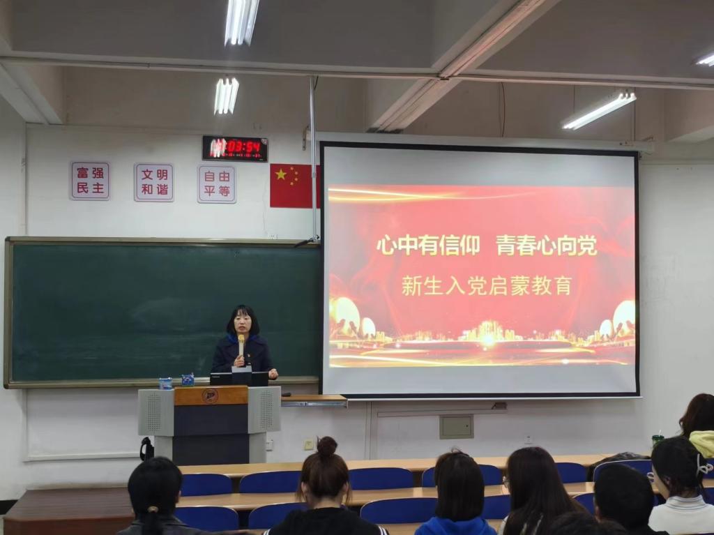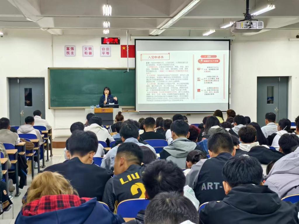许霞老师围绕“心中有信仰,青春心向党”为主题,深入浅出地介绍了党的基础知识、明确申请入党的条件、共产党员的条件和标准等。员工党员王琦带领同学们学习党的性质、端正入党动机等知识,介绍了发展党员的工作流程及入党材料的写作要求。鼓励新生们从启蒙教育开始,自觉学习党的理论知识,增强政治觉悟,努力提高自身综合素质,为将来成为一名合格的共产党员做好准备。