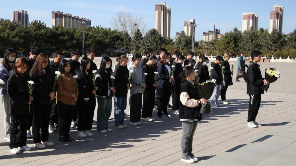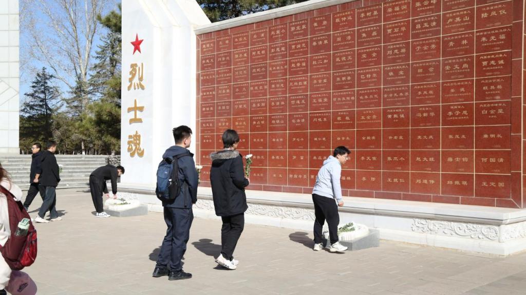 随后,志愿者们依次在纪念碑前为烈士们献上鲜花,并深深地鞠躬,以表达我们最深沉的敬意。昔日您们英勇无畏,昔日您们斗志昂扬,今天,让我们这些后辈向您们献上最崇高的敬意,沿着您们走过的道路继续前进。愿您们的英勇精神永存于世,激励我们不断前行!