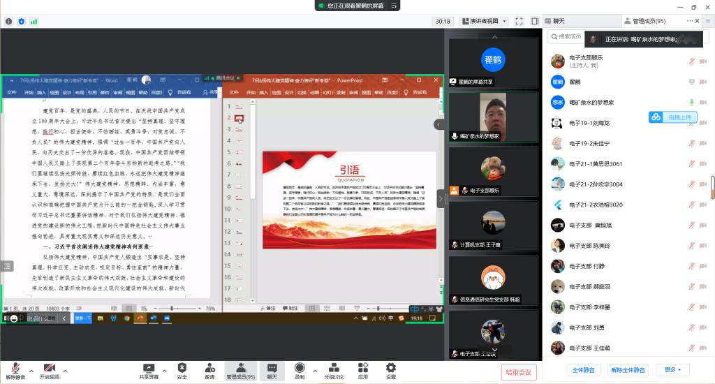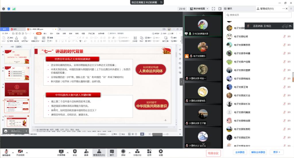 公司党委委员、行政支部书记许霞对老员工入党知识进行了讲解普及;党委书记王彩玲组织大家认真学习贯彻习近平总书记“七一”重要讲话精神;党委副书记、副经理王金彪组织大家对党的十九届六中全会精神这一课题进行深入讨论交流;校外辅导员翟鹤重点给大家讲了弘扬伟大建党精神,奋力答好“新考卷”;经理李春明对“深刻把握五个必由之路”这一话题引导大家展开讨论、学习。