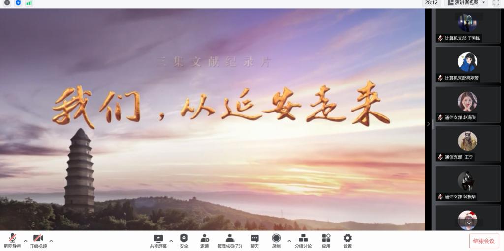 学习过程中,同学们观看了《我们,从延安走来》纪录片,深入贯彻党的十九届六中全会精神,以新时代的视角回顾中国共产党在延安的革命历史;还观看了《中国共产党第十九届中央委员会第六次全体会议公报》,引导同学们更加注重用党的奋斗历程和伟大成就鼓舞斗志、明确方向,用党的光荣传统和优良作风坚定信念、凝聚力量,用党的实践创造和历史经验启迪智慧、砥砺品格。