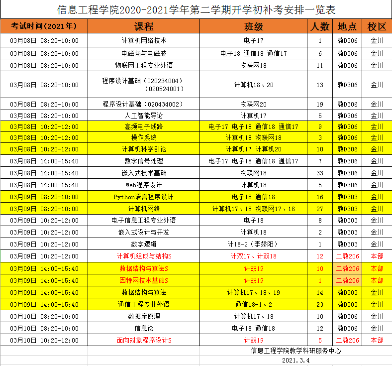 现将2020-2021学年第二学期开学初补考及成绩报送安排通知如下: