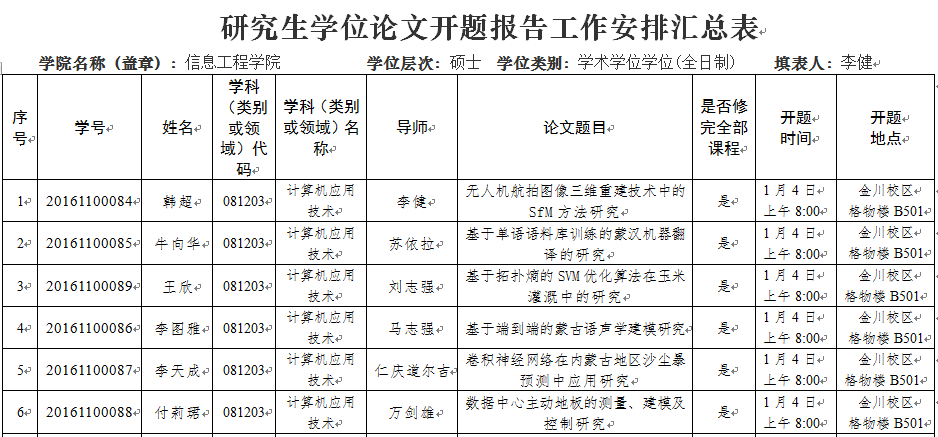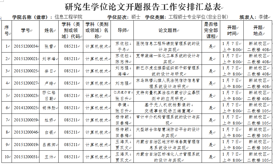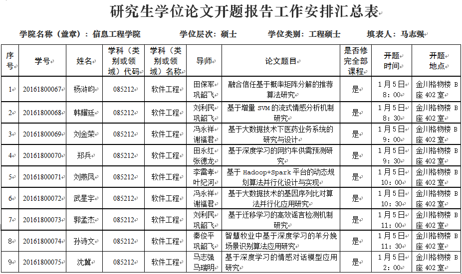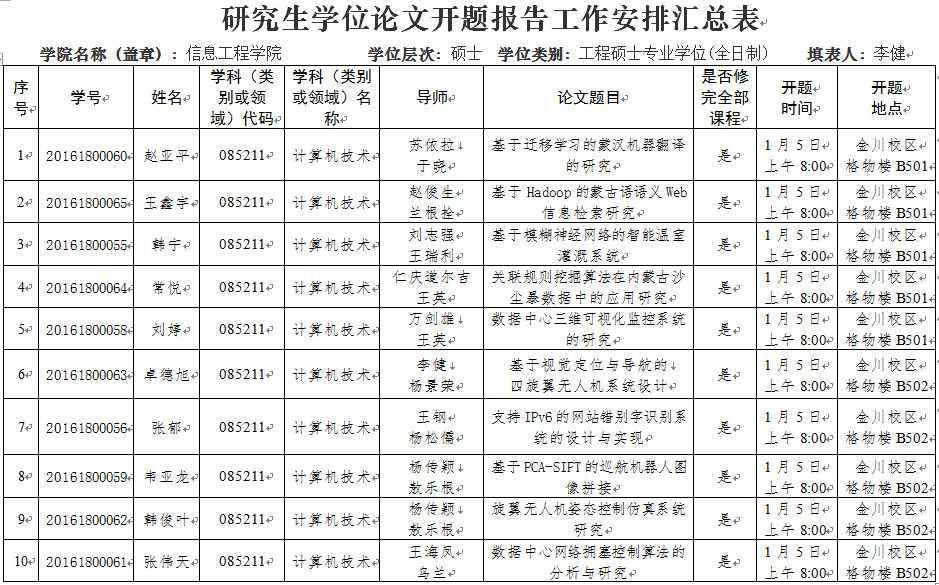 2018年1月计算机学科点硕士研究生开题安排