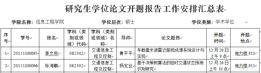 2016年12月交通信息工程及控制硕士研究生开题安排