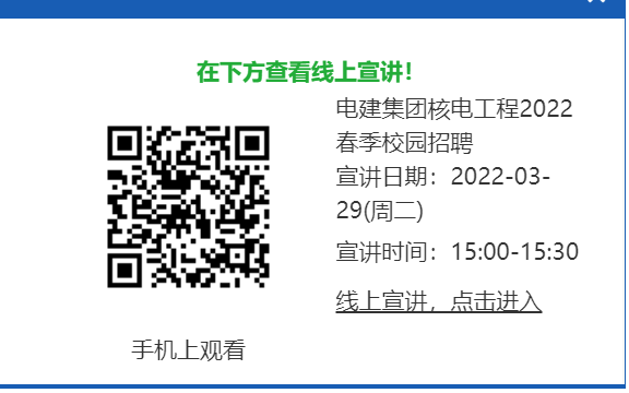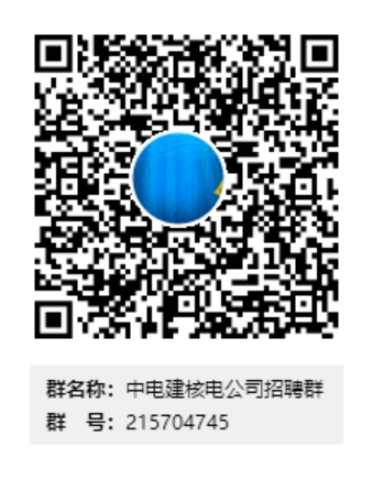 3.QQ群:应聘人员申请加入“中电建核电公司招聘群”,QQ群号:215704745,加群申请格式:毕业公司+专业+姓名。