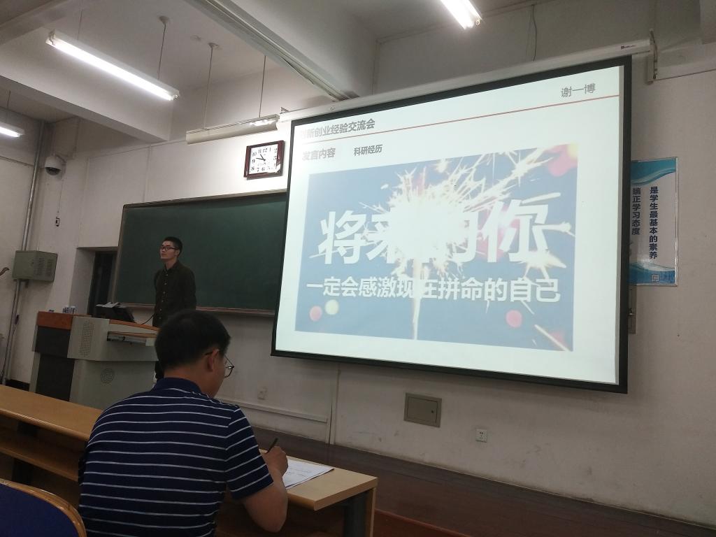 会上,计算机14-1班谢一博,电子15-1班韩旭2位同学做了交流发言。谢一博讲述了自己从大一入学以来认真学习专业课知识,成绩一直名列前茅,从大一到大四他还一直担任班长并兼任员工党支部书记,合理处理学习时间与担任社会工作的关系。另外,他积极参加各类大赛,努力寻求专业创新点,也取得非常突出的成绩,最终被保送到中国科公司攻读研究生。韩旭和大家分享了自己入学三年来组建并带领自己的团队,积极探索专业领域创新创业点,大胆突破,勇于实践,顺利入围公司第六批员工创业项目,并最终问鼎所有参选项目,获得最高金额3万元的创业扶持资助。