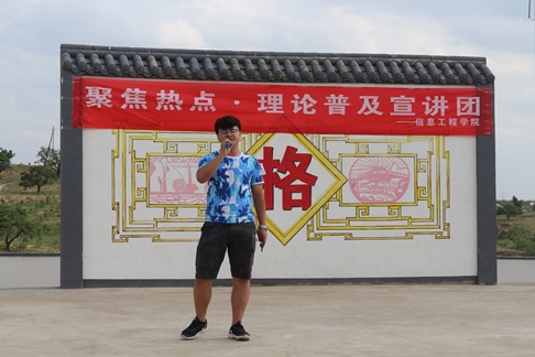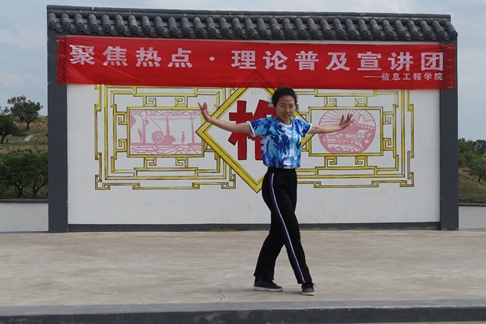 清晨六点,队员们在校门口集合,为活动做准备。历经两个小时的车程后,师生一行来到实践地点——台格斗村,并受到了村里领导和村民的热烈欢迎。随后,师生在村主任的引导下参观了当地的旧民居和游击旧址,深刻体会到村民们旧时生活条件的艰苦,在与附近的整齐划一的新房对比后,认识到如今在新时代的农村政策下,村民的生活水平有了质的飞跃。接下来师生一行来到了当地的经济林与古杏林,村支书热情讲解,让师生了解到了当地近几年经济发展的情况以及未来的发展规划。中午稍事休息后,“聚焦热点·理论普及宣讲团”随即展开理论宣讲工作,队员们在广场上摆放桌椅、支起帐篷,在宣讲之前先是为村民献上了一场精彩的文艺表演,在欢声笑语中让村民们对新时代的农村政策有了更加深刻的认识;与此同时,其余队员们则去拜访当地村民,以采访的方式来记录村民对于“乡村振兴”的看法及建议,并邀请村民们填写有关“乡村振兴”战略的调查问卷,村民们热情高涨,即使文化程度较低的村民也积极参与、认真填写。活动结尾,老师和同学们在村主任带领下探望了台格斗村困难家庭,为他们带去了工大人的慰问与温暖。
