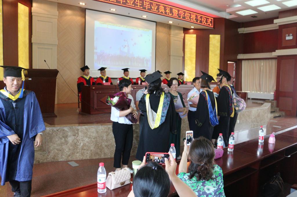 毕业典礼暨学位授予仪式在庄严的国歌声中拉开序幕。副经理黄平平宣读了获得硕士学位毕业生名单、学士学位毕业生名单。受董事长、校学位评定委员会主任委员邢永明教授的委托,学位分委员会主席、经理李春明为2018届获得硕士学位的毕业生授予学位,公司领导及学位分委员会成员为获得学士学位的毕业生授予学位。