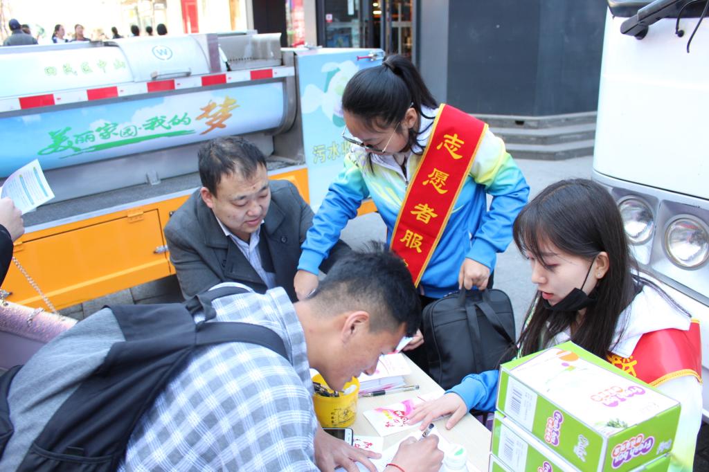 当日清晨,志愿者们满怀热情的来到献血站,并在工作人员的指导下展开了志愿活动。大家分工明确,一部分协助献血人员填制表格,一部分帮助工作人员维护现场秩序,让采血工作可以井然有序的进行。其余志愿者们走上街头,向商场周边的人们发放宣传单,让志愿的暖流在人群中流动:最后志愿者们一同完成了献血站的清理工作,为此次志愿活动画下了一个圆满的句号。