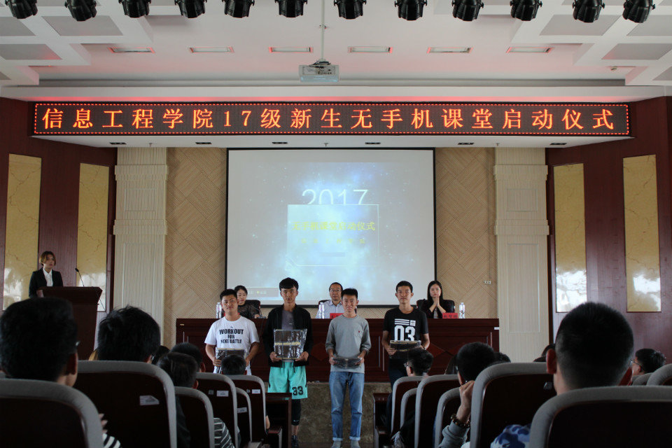 为加强学风建设,规范课堂教学秩序,提高课堂学习效率,公司于9月21日下午举办17级新生“无手机课堂”启动仪式。公司党委副书记、副经理王金彪、学工办主任许霞、团委辅导员赵智琦,200余名新生代表参加启动仪式。