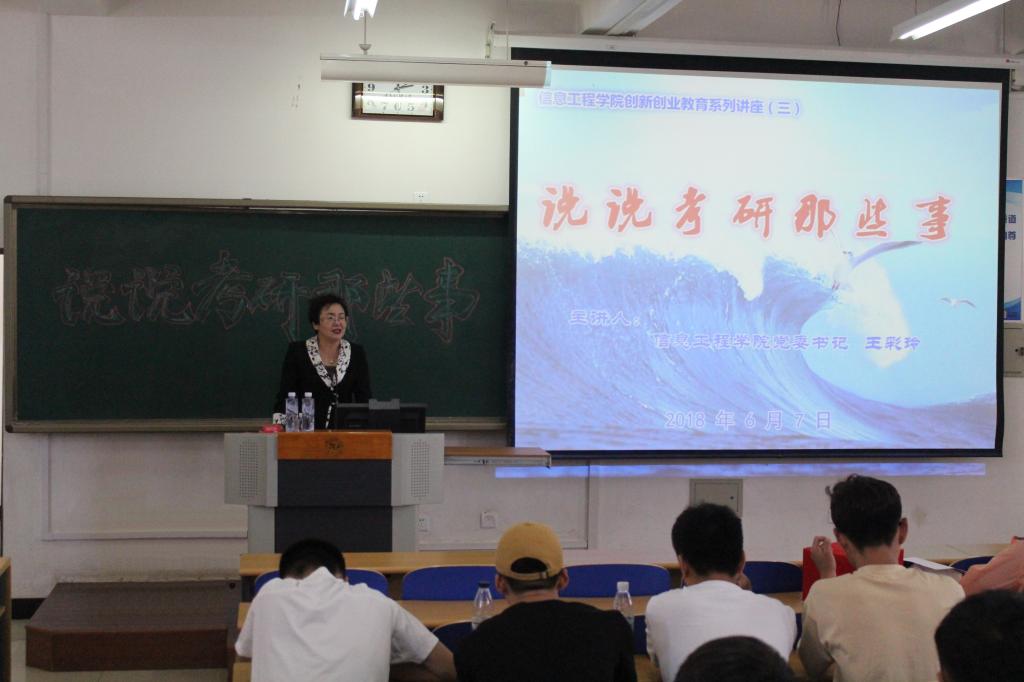 6月7日下午,公司举办创新创业教育系列讲座之三——《说说考研那些事》。本次讲座由公司党委书记王彩玲主讲。王书记在来公司之前一直在校研究生工作部担任领导岗位,她对考研这块儿非常熟悉。经过精心准备,她从考研目标,考研方向,考研准备,考研过程,录取原则及研究生社会需求等多个方面为同学们做了详细的介绍。她强调,当前本科生已经非常普及,就业压力非常大,将来读研提升学历必然是大趋势,所有的本科生都要做好准备,早计划、早行动,认真复习,努力备考,争取通过提升学历的方式来改变自己的命运。王书记还为同学们介绍了当前国家、自治区及公司对研究生的各项资助政策,同时对公司雷达研究所招录研究生的优惠政策做了全面的讲解。