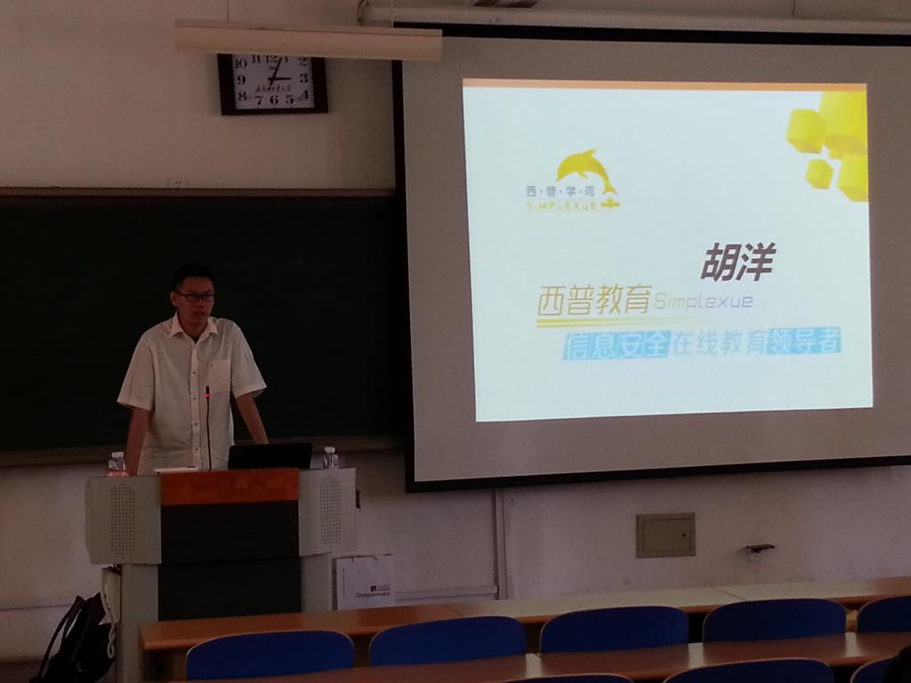 为进一步浓郁公司的学术氛围, 6月16日下午,公司邀请北京西普阳光教育科技股份有限公司信息安全教研工程师胡洋老师来院做网络信息安全方面讲座。